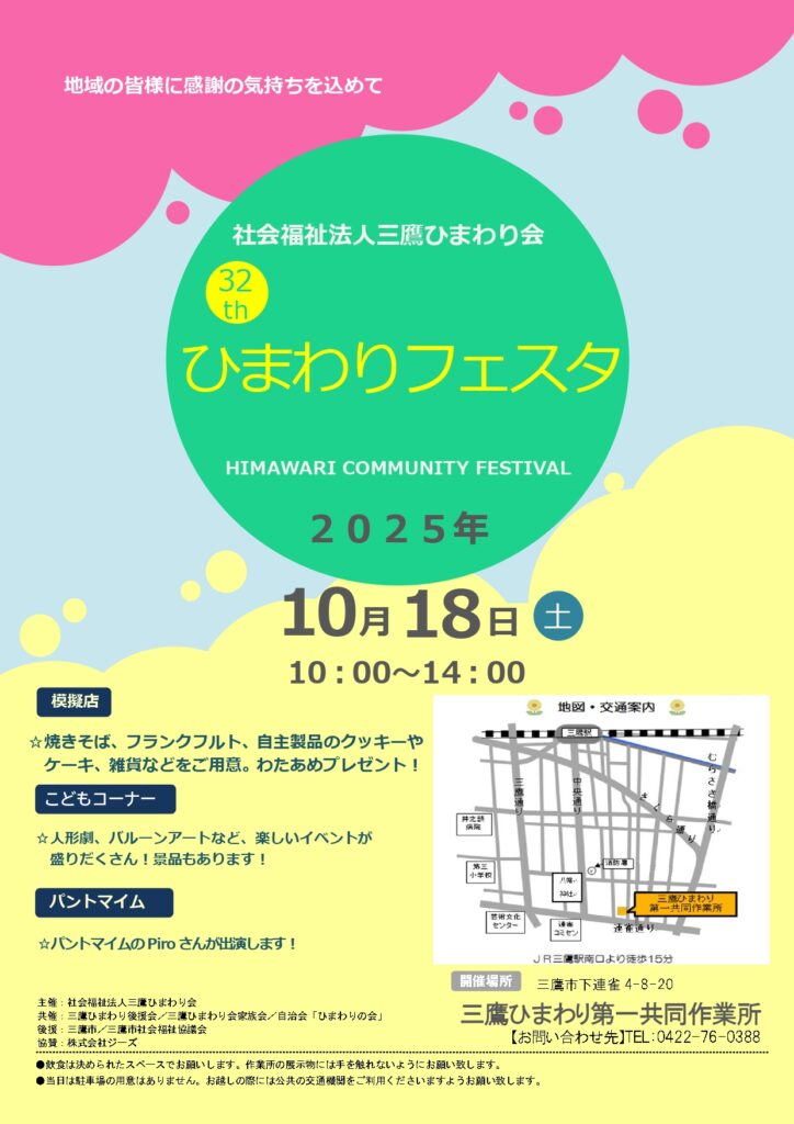 来る10/18(土)に、ひまわりフェスタ(旧:地域交流祭)を開催します! 様々な催しを企画しておりますので、地域の皆様のご来場をお待ちしております♪ お問合せ先:TEL0 […]